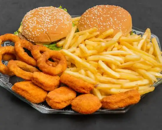 3x-tudo, batata com cheddar e calabresa, ovo de codorna, nuggets, Onion Rings e 1 refri 2 litros